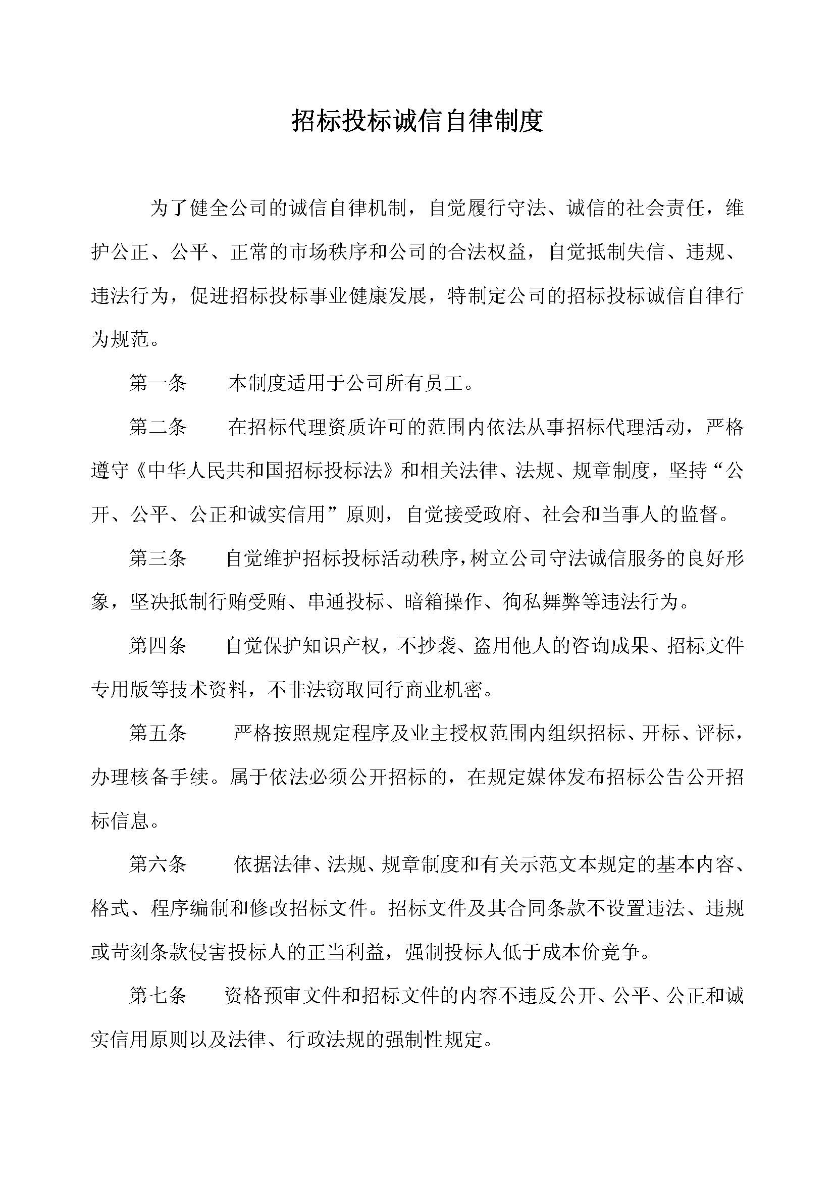 招標(biāo)投標(biāo)誠(chéng)信自律制度