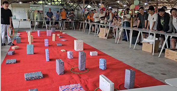 暴雨中,大家齊聚一堂,進(jìn)行有趣的名為“盲盒歡樂(lè)圈”的套圈游戲。公司精心準(zhǔn)備了60份各不相同的周年慶禮物,每個(gè)人憑實(shí)力套取自己中意的禮物。場(chǎng)中禮物大小不一,包裝整齊又嚴(yán)實(shí),誰(shuí)也不知道到底這60份禮物到底是什么,大家的好奇心已經(jīng)被調(diào)的足足的,摩拳擦掌準(zhǔn)備一展身手。套圈是一項(xiàng)兼?zhèn)涫炙?、眼力、身體協(xié)調(diào)能力、大腦控制能力、以及幸運(yùn)于一體的活動(dòng),即能鍛煉身體又能增加愉悅。每個(gè)人為了套到中意的禮物都拼盡全力,周圍的小伙伴在加油鼓勁,進(jìn)行場(chǎng)外指導(dǎo)。套中了,大家鼓掌歡呼;沒(méi)套中,沒(méi)關(guān)系,給你下一次機(jī)會(huì)。在一次次歡呼,一次次不可思議中,大家都滿載而歸。